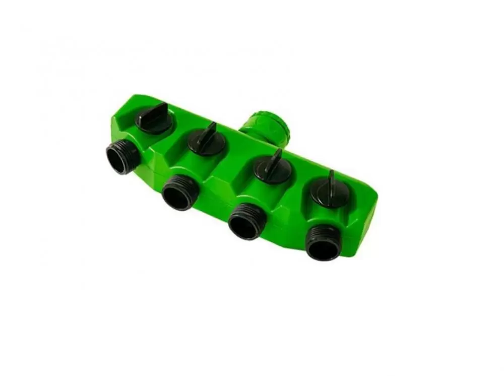 Distribui água para 4 dutos, com válvulas independentes para regulagem do fluxo.