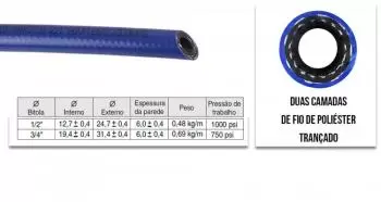 Informações Técnicas Mangueira Lava Jato 12,7mm 1/2 Azul - Bariflex- ATENÇÃO -VALOR REFERENTE AO METRO